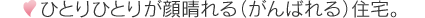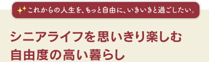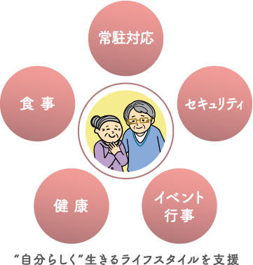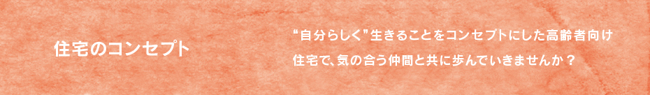 「自分らしい生き方」を望まれる高齢者の方が、それぞれ自立した生活を送りながら、自宅と変わらないアットホームな"あたたかさ"のなかで、"安心"して暮らせる共同住宅です。