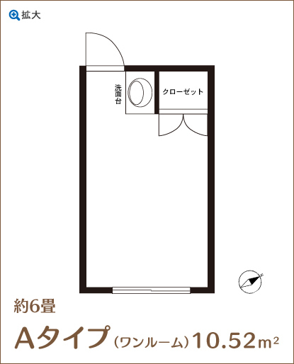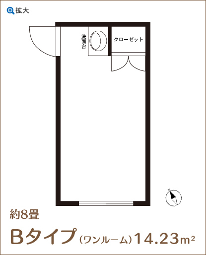 | 専有面積 | 10.52m2 〜 14.23m2 (約6畳または8畳) |